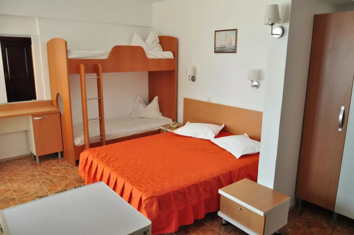 Camerele sunt dotate cu baie (renovata), TV, AC, minibar, telefon, balcon, pardoseala cu gresie si covorase, fotolii si masuta, geam termopan; garsoniere: dubla matrimoniala si o canapea extensibila; apartamente: living cu canapea extensibila si dormitor cu pat matrimonial.